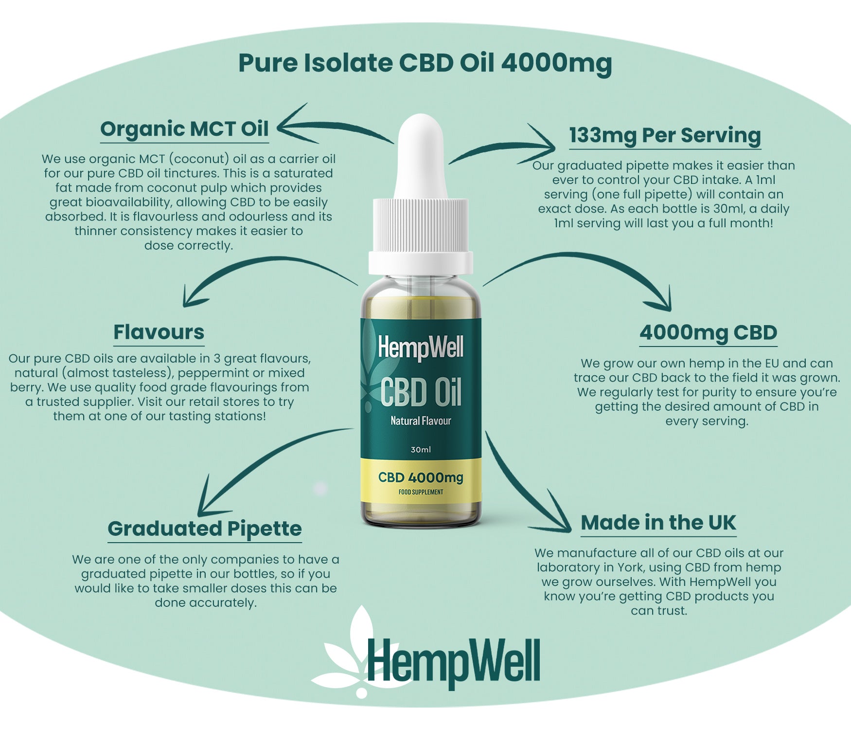4000mg of CBD, 30ml Bottle, Graduated Pipette, Made with 99% CBD Isolate, Zero THC